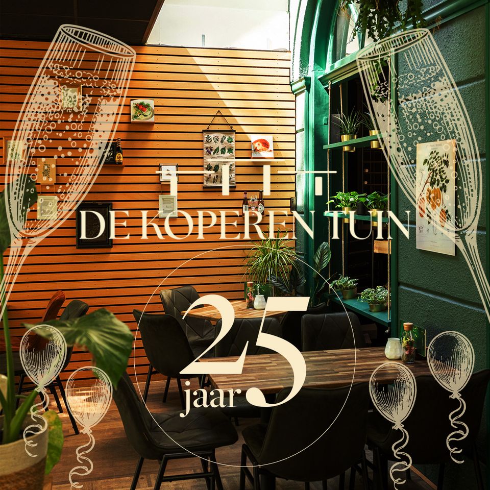 De Koperen Tuin feiert 25 Jahre! 🎉 Seit 25 Jahren ist De Koperen Tuin ein Ort für besondere Abende, schöne Momente und gute Gesellschaft mitten im wunderschönen Prinsentuin-Park in Leeuwarden. Dieses Jubiläum feiern wir das ganze Jahr über mit besonderen Dinnerabenden, Veranstaltungen und Überraschungen. Von kulinarischen Events bis hin zu gemütlichen Brunches und stimmungsvollen Sommerabenden.