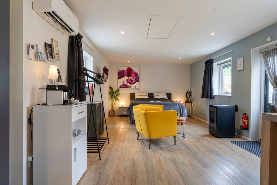 Our features: Top quality beds, private bathroom with rain shower, towels, bathrobes, slippers, hair dryer, bath items, kitchenette with fridge, microwave, ceramic hob, crockery and glassware, WiFi, digital TV, Netflix, ESPN Sports, air conditioning, coffee machine (Nespresso) and tea kettle , attractive pellet stove, private car park, closed bicycle shed, bicycle rental (tandem and e-bikes), private south-facing terrace, plenty of tourist information.